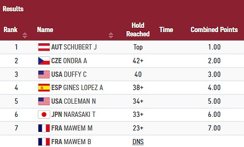 "Český lezec do finále nastupoval s naprostým klidem a v rychlosti dokonce zalezl osobní rekord. Po boulderech stále mohl doufat v medaili, ale závěrečný výkon Rakušana Schuberta odsunul osmadvacetiletého Ondru až na šesté místo.