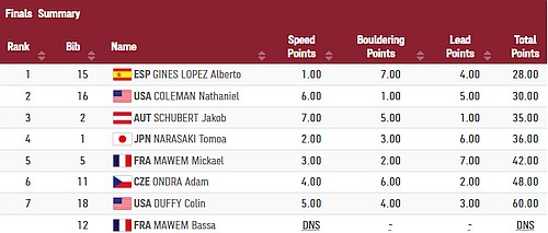 Do posledních vteřin finále obtížnosti nebylo jasné, kdo dostane medaile. V závěru před nástupem posledního startujícího Jakoba Schuberta byl Adam s 1. pozicí v obtížnosti celkově stříbrný.