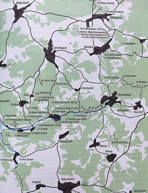 Walberla, Trubachtal, Betzensteiner Gebiet, Spieser Gebiet, Schnaittacher Gebiet, Pegnitztal, Krottenseer Forst, Hirschbachtal, Königsteiner Gebiet, Lehental, Högenbachtal, Förrenbachtal a Lauterbachtal
