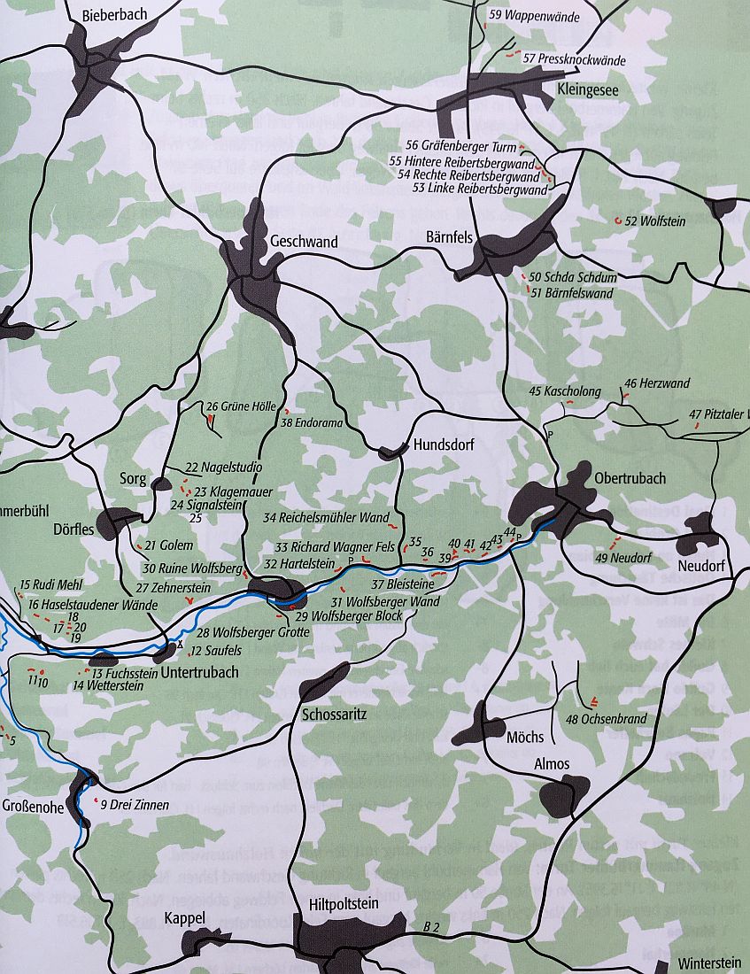 Leinleitertal, Wiesenttal, Gößweinstein, Püttlachtal, Weihersbachtal, Klumpertal, Ailsbachtal, Paradiestal, Kaiserbachtal, Scheßlitzer areas, Staffelberg, Kleinziegenfelder Tal, Bärental a Zillertal!