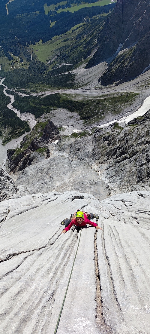 Turistika to není, je to imho jedena z nejlepších lajn ve východních vápencovejch Alpách, vede krásnou logickou cestou přímo na vysokej kopec, kde je navíc ještě hosdpoda (koukal jsem do ní ze sousední Dientner Weg).
