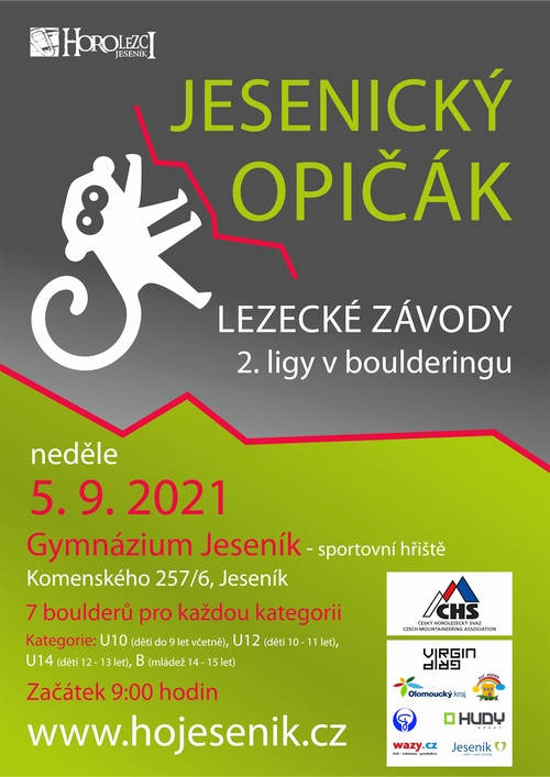 Letos můžeme navíc v rámci akce SPORT pro Jeseník uspořádat 5. září také závod 2. ligy v boulderingu Jesenický opičák.