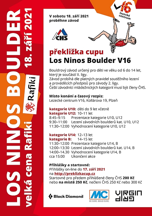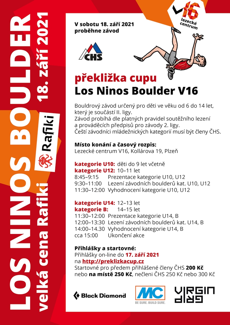 V sobotu 18. září 2021 proběhne závod Překližka cupu Los Ninos Boulder V16. Jedná se o boulderový závod určený pro děti ve věku od 6 do 14 let lezoucích v kategoriích U10, U12, U14 a B.