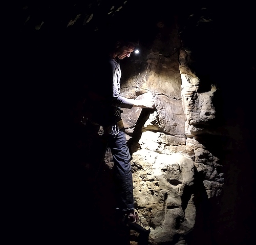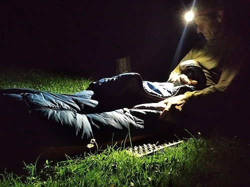 Testování čelovky při nočním lezení, zde jsem zkoušel režim s výkonným reflektorem