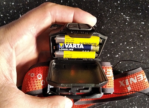 V nouzi lze vyměnit dobíjecí akumulátor za tři běžné tužkové AAA baterky