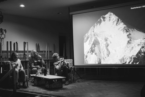 Letos jako první vystoupil Banán. Povídal o tom, jak se leze s Háčkem na velký kopce. V roli mediální hvězdy se sice teprve rozkoukává, ale přednáška se mu povedla na výbornou.  Následovalo povídání o tom, jak se leze na Gaš dvojku v ženském podání bez kyslíku, kterého se moderátorsky chopil Martin. Dina tam byla v osmdesátým osmým a krom enormního fyzického výkonu to vyžadovalo notnou dávku zarputilosti a odhodlání. Kádrově to měla na hraně a ženské lezení se v té době také nepodporovalo. Výsledek byl, že nahoru vylezla s Lívií navzdory výslovnému zákazu vedoucího expedice. Po úspěšném návratu do BC jí čekalo vyloučení z expedice a komplikovaný návrat domů na vlastní triko. No byly to zvláštní časy. Kája tam vylezla letos. I dnes to organizačně vyžaduje jistou dávku úsilí. Přeci jenom to je v Pakistánu a když to srovnáte s výletem na Kokořín, tak to komplikovanější je.  Samotný výstup zvládla bravurně a když při sestupu potkala svého parťáka, který zvažoval, že to otočí, tak ho notný kus doprovodila směr vrchol. Každopádně zažít Dinu a Káju spolu na podiu bylo hodně inspirující.