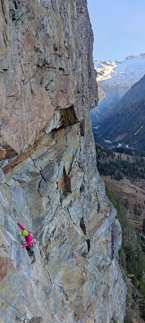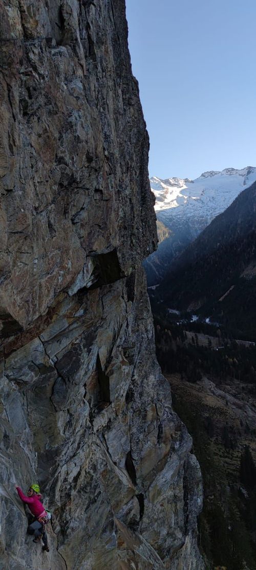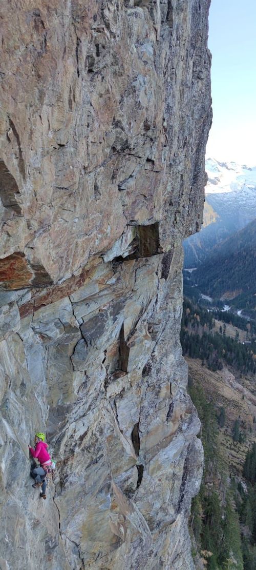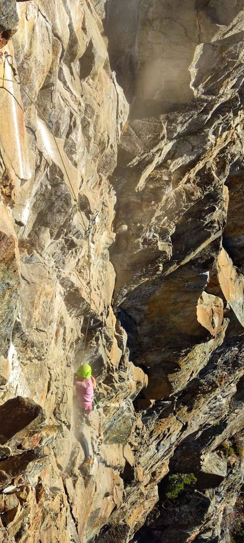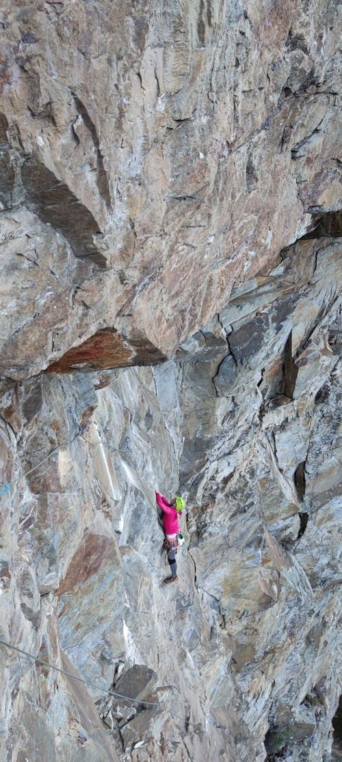 Vstávat jsme museli vzhledem ke krátkým dnům v brzkých ranních hodinách. Věděli jsme, že na to máme max 10 hodin, než bude tma. Měli jsme 7 délek hotových a stále jsme přemýšleli, kudy nás skála pustí dál. Nahoru bylo zapotřebí vytáhnout batoh se 30 nýty, řetězy, vrtačkou s baterkami, samozřejmě voda a další potřebné věci. Těžký to bylo teda dost.