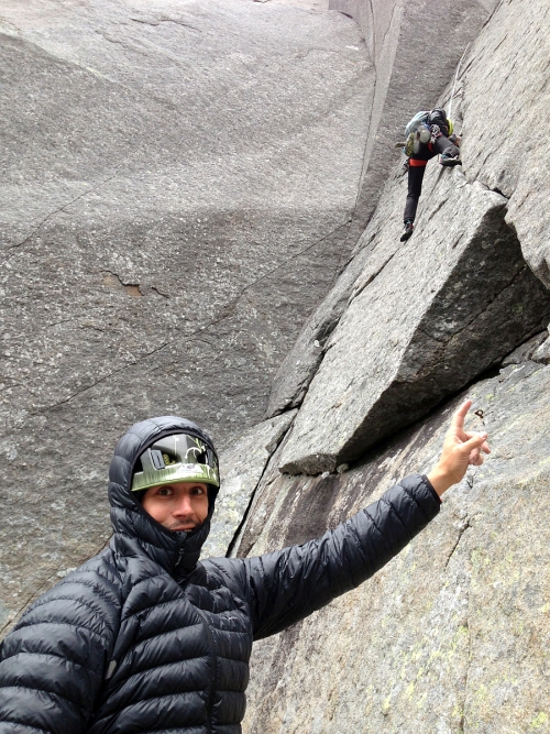 Neúspěch zajídáme marmeládou a hned o den později rozlézáme prvovýstup v panenské stěně Moltbaertindenu. Po dvou délkách kraulování v plotnách nás však ze stěny sundává déšť. Prcháme ze žlutého frenda a jdeme na ryby. Skóre po dvou dnech v Kirkefjordu je nevalné: -1 friend, -2 mikro vklíněnce, -3 pilkry z Decathlonu (návnady na mořský rybolov), -2 karabiny, 0 vylezených cest, 0 chycených ryb.