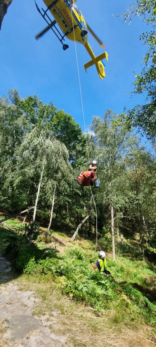 „Lezec spadl z výšky cca 10 metrů a opět k nám zamířil vrtulník LZS. I zde záchranář s lékařem na místo slanili a my jsme po ošetření a zafixování pacienta šetrně transportovali po zemi k čekajícímu stroji. Následoval převoz do nemocnice v Ústí,“ doplnil Jan Mach, druhý zasahující člen krušnohorské HS.