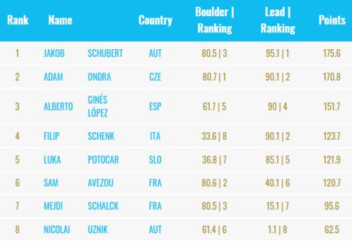 2 Adam ONDRA CZE 80.7|1 90.1|2 170.8