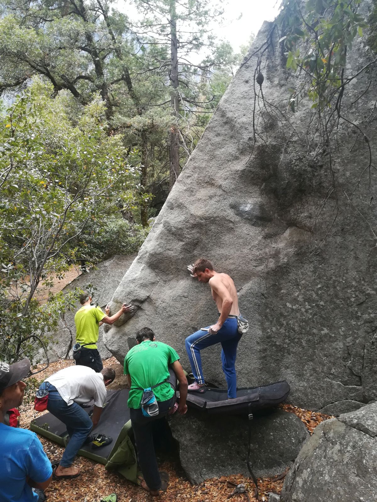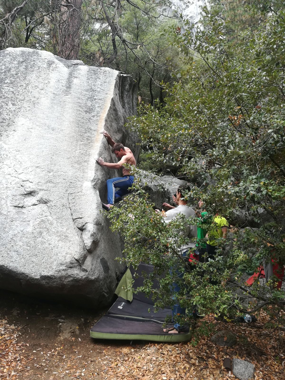 Skupinové soustředění v legendárním boulderu Cocaine corner, Camp 4