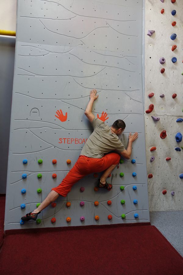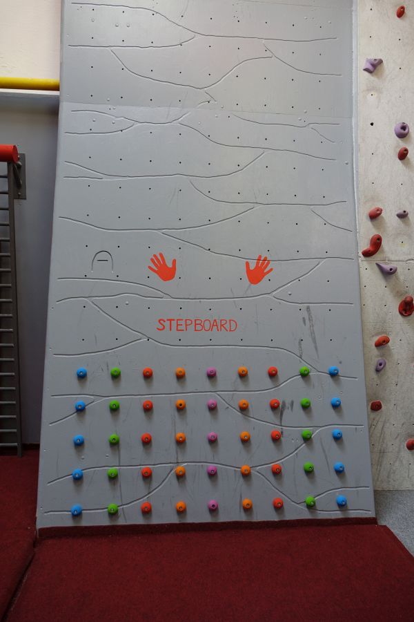 U nás v Holeškách mě napadlo řešení, které se ukázalo být jednoduché a přitom velice účinné. Jasně, rajbák na stěně , nic nového. Rajbáky na stěně jsme měli už od začátku a byly velice oblíbené. Ale postupem času jsem vymyslel tohle - STEPBOARD.
