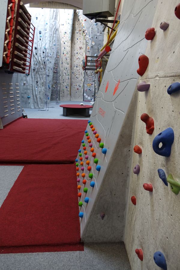 Obtížnost se dá bez změny sklonu stěny vystupňovat tím, že si přiděláte na stěnu menší stupy.