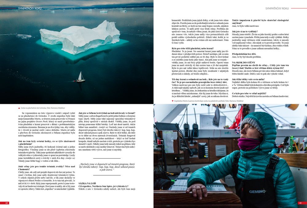 Už desátým rokem pravidelně ve spolupráci se Standou Mitáčem ze sesterské eMontany vyhlašujeme „Sympaťáky roku“. Tentokrát jsou to sympaťačky, které se vydaly během loňského léta do Grónska s cílem udělat novou bigwallovou cestu. Jen na cestě po moři, ale i po souši strávily celkem 46 dní a tři dny jim pak trvalo vylézt téměř osm set metrů dlouhý prvovýstup.