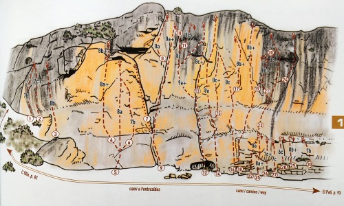 Cesta Sleeping lion, 9b+ v části sektoru El Pati vpravo od čísla č. 24 (hi re s)