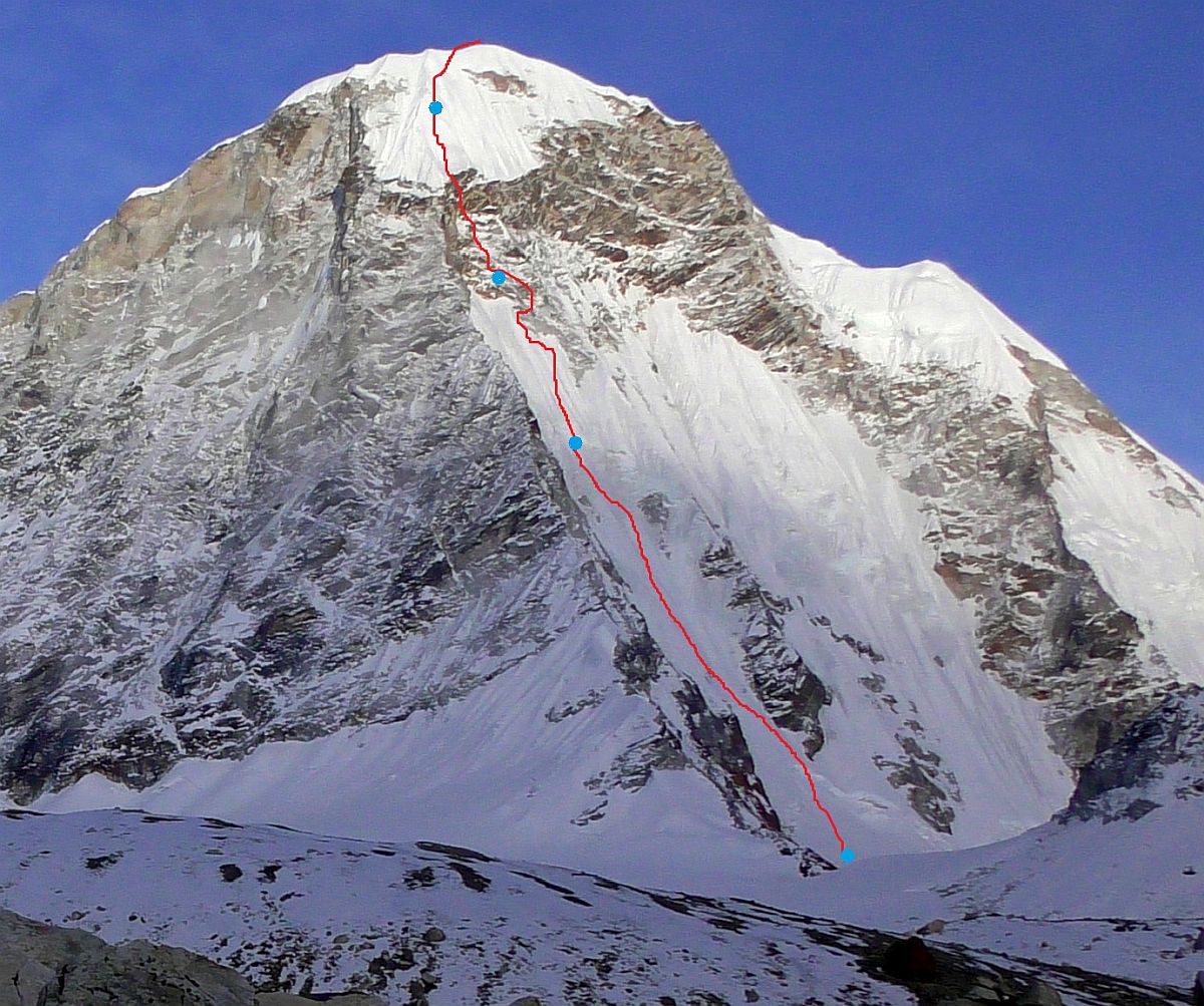 Obraz bezejmenné pyramidy, zvedající se příkře nad ledovcem, se mi sem tam vracel při zavření víček poslední dva roky. V duchu jsem si představoval, kudy by mohla vést linka průstupu až k vršku. Nedalo se nic dělat. Myšlenka šla na světlo a zatížil jsem ji realitou otázek. Znamenalo to vyhledat své archivní fotky, probrouzdat internet, časáky, rozeslat dotazy. Následně veškeré informace přežvýkat a znovu podrobit otázkám. Kdo, kdy a kudy tam lezl?