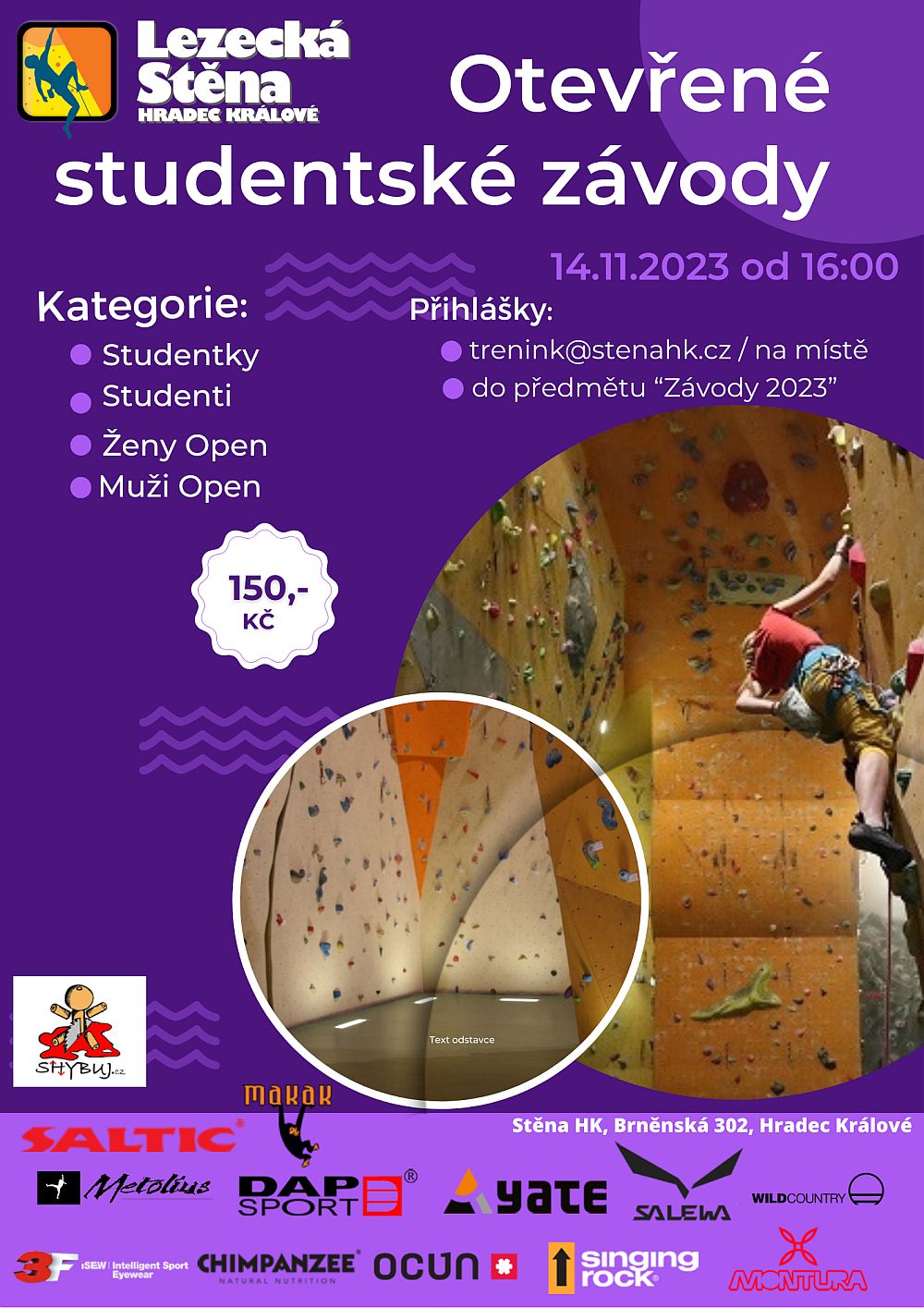 Po krátké odmlce Vám můžeme s radostí oznámit, že se u nás na Lezecké stěně Hradec Králové budou opět konat Otevřené studentské závody!