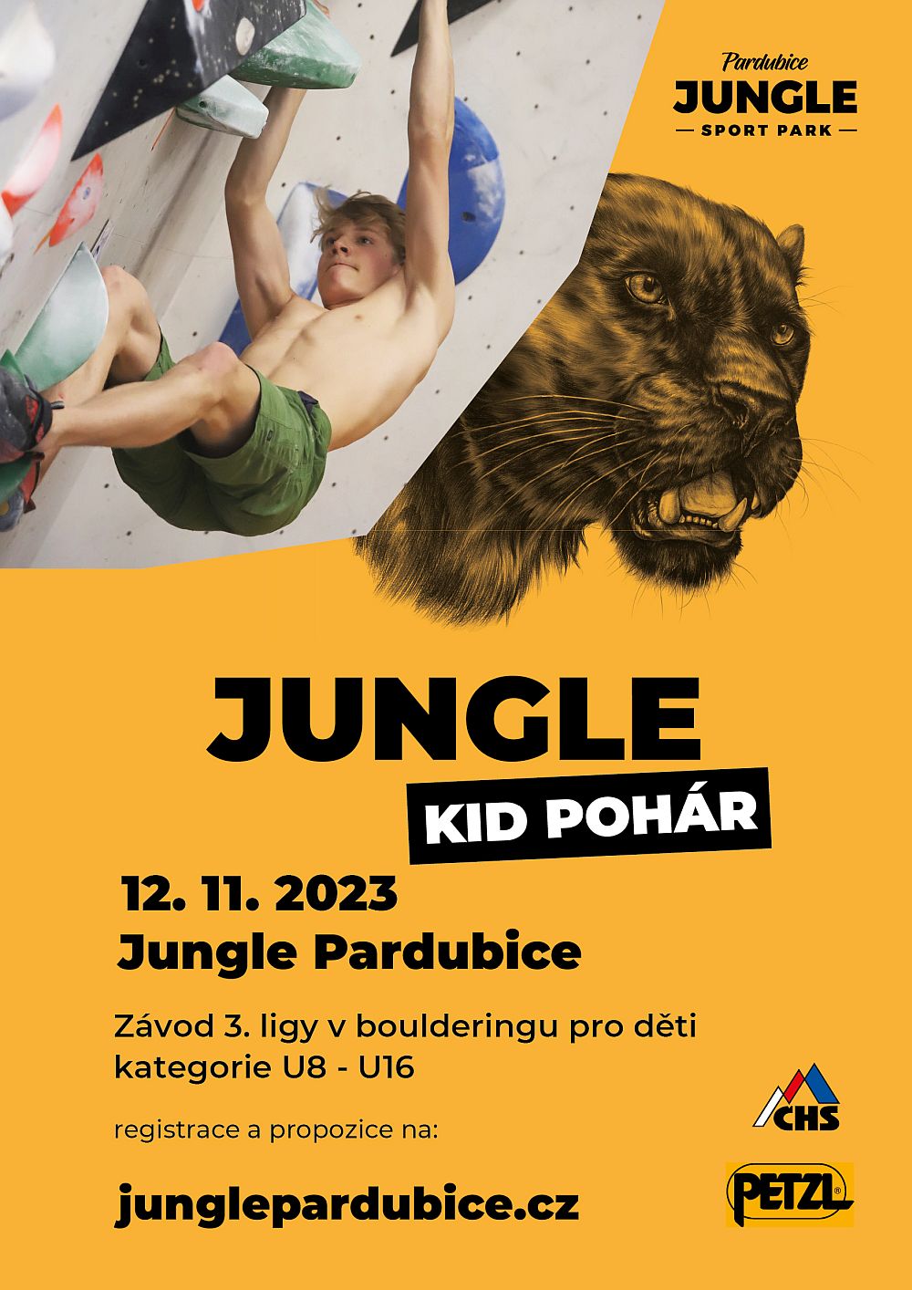 Doraž 12.11.2023 na boulderingové závody 3. liga pro děti (kategorie U8 - U16) do Jungle Sport Park Pardubice! Čeká Tě prima atmosféra a krásné bouldery. :)
