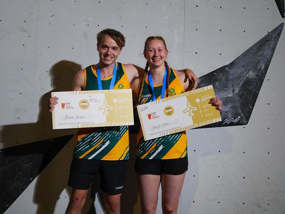 Joshua Bruyns a Aniya Holder (oba RSA) se kvalifikovali na olympiádu v lezení na rychlost © The Good Beta/IFSC