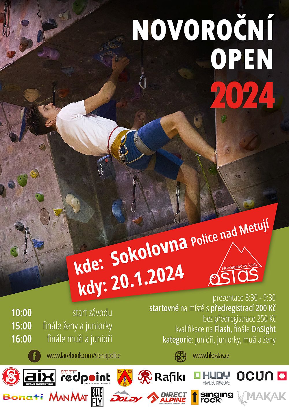 Nová lezecká závodní sezóna začíná a tradiční otvírák v Polici nad Metují bude pro vás připraven na 20. 1. 2024. Osvědčení stavěči Alberto a Prťka se Sankou připraví čtyři kvaldy a v podvečer si to nejlepší rozdají v mužském a ženském finále.