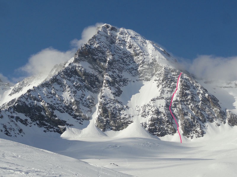 350metrová linie potenciálního prvovýstupu v jižní stěně Grossglockneru
