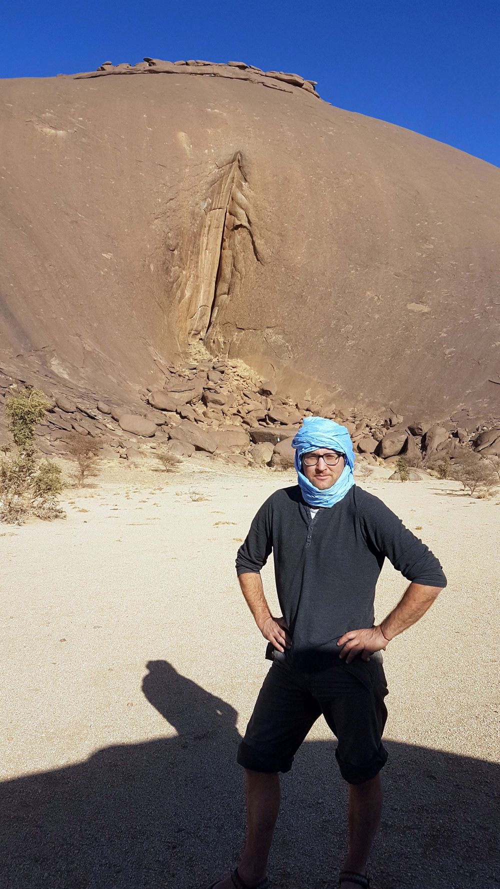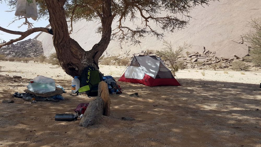 Ben Amera 633 m.n.m. Je skutečně obrovskej monolit. Velikost si uvědomujeme, když stojíme u nástupu cesty: Le Point Afrique D+ 400 m, 6a. Přímá linie vzhůru. Nýty 7-10 m od sebe. Lezení po malých lištách. Doporučuji další pěknou cestu: Mauritanides Voyages AD 5 puis D+ 500 m 6a. Ben Amera má aktuálně 16 cest. Nejlehčí cesta: L’Ode à l’Aube AD 350m 4b+ . Naopak nejtěžší cesta: La Loi du Désert ED+ 540 m 7c/ 8a.
