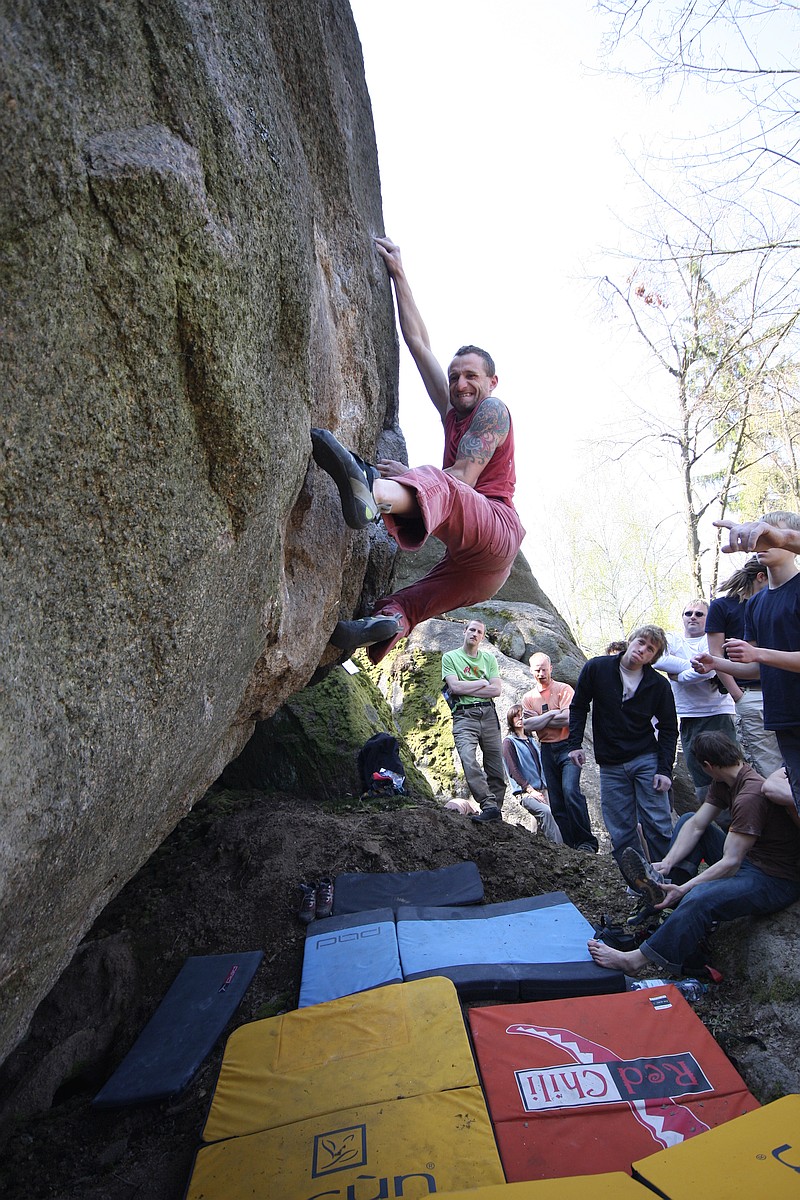 Jinak vše při starém. Množství technických špeků, pár vysokých linek, lezení od jedničky do 8C(+), krásný les, základna celý víkend na jednom místě, ubytování vlastní (auto, stan, širák) nebo v chatkách, každý večer oheň, v sobotu muzika na pódiu, pívo, límo, bašta, prodejní stánek firmy ProRock Climbing (parádní hadříky do skal) a spousta kamarádů.