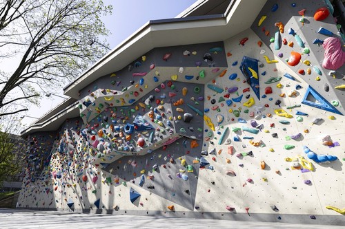 Z pragmatických důvodů je celá stěna koncipována jako spray wall s velkým množstvím nahozených chytů nejrůznějších tvarů a značek, což umožní maximálně využít její potenciál a zároveň zapojit vaši osobní kreativitu při vymýšlení vlastních projektů.