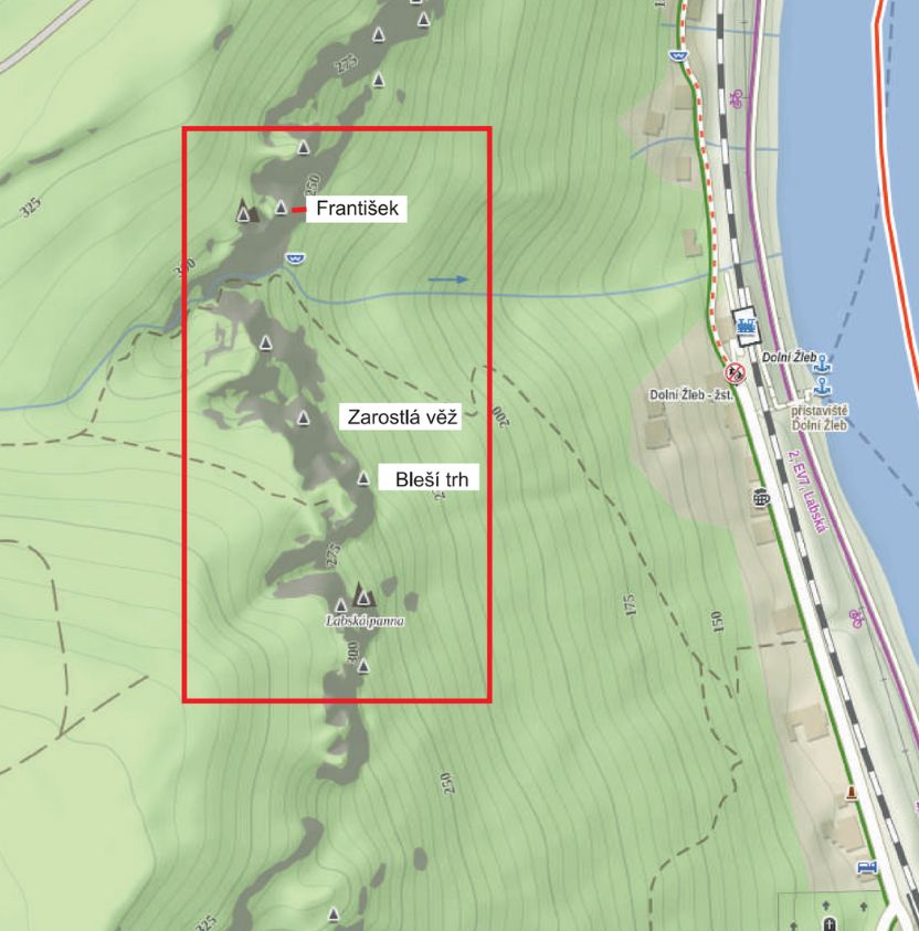 Lesy ČR budou provádět kácení kůrovcových smrků v sektoru Ostroh Labské panny, kde půjde o skalní objekty: Labská panna, Labské nic, Bleší trh, Áron, Zarostlá věž, Ervín, v sektoru Nad Švýcarkou a zde půjde o skalní objekty: Šípková Růženka, Panic, František, Terč viz mapa níže.