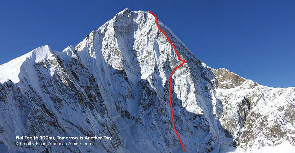 Flat Top (6 100 m) prvovýstup Tomorrow Is Another Day (1 400 m, ED, 5c A2 WI4 M6) severní stěnu Flat Topu, Himaláje Kishtwar, Indie, Nathan Monard, Hugo Béguin a Matthias Gribi (Švýcarsko) 2. až 6. října 2023. Sestup nevylezenou západní stěnou.