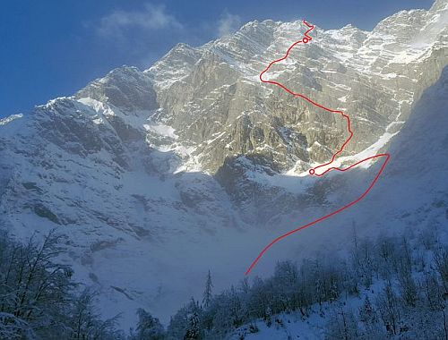 Milé děti, pohodlně se usaďte, neboť právě začíná večerníček s vašimi oblíbenými hrdiny. Na úvod je zvykem ukázat klobouk kouzelníka Pokustona, v němž bydlí dva králíci – Bob a Bobek. Ano, tady je máme. Blíží se půlka ledna, venku počasí, že by brojlera nevyhnal, Bob se potýká s latentní tularémií a Bobek kňučí, že má zchromlou packu. Králíčata se překonávají v pištění, králice, vidouce postupný fyzický a mentální rozklad svých samečků, zavelí k ozdravnému výletu do hor: „Jeďte a nevracejte se, dokud s vámi nebude k vydržení!“ Neuposlechnutí nepřichází v úvahu, zbývá tedy určit cíl. Deštivý podzim slibuje slušné podmínky v Javorácích, což Bobek tak trochu tuší. Ovšem zkraje roku proběhne po internetech echo „Titanka je v podmínce“. Dá se tedy očekávat, že pod nástupem už je instalován automat na elektronický výdej pořadových čísel a taternici si šlapou mačkami po hlavách a zoufale hledají kus kompaktního ledu, kam ještě nikdo nevrtnul. Takto nevypadá přirozený biotop našich dvou hebkých hrdinů. Chvilka listování v seznamu dlouhodobých cílů (A), co je blízko (B), co má příznivou předpověď (C), kde je příznivá lavinovka (D), na co postačuje fyzický fond (E), co bude oběma šmakovat (F). A ∩ B ∩ C ∩ D ∩ E ∩ F = třetí nejvyšší stěna Alp, v zimě velmi chutné sousto, navíc kořeněné těžko uvěřitelným výkonem jednoho z největších králíků a autora iniciační knihy mnohého ušatého alpinisty – Achttausend drüber und drunter. Ještě vyslat elektronického poštovního holuba směrem ke Christl, vševědoucí patronce místních běláků žijících pod kopcem a živících se voděním, s prosbou o nějaké info k podmínkám ve stěně. Odpověď, kterou si Bob s Bobkem přečtou (naštěstí) až po návratu, obsahuje pasáže jako „spousta nového sněhu“, „většinou prašan, takže bude třeba razit stopu“, „možnost lavin“, „z místňáků ještě tuto zimu ve stěně nikdo nebyl“. Na závěr je připojeno přání, aby ušáci pojali „kluge Entscheidung“. Buď pochválena, sladká nevědomosti, dobrodružství nic nestojí v cestě.