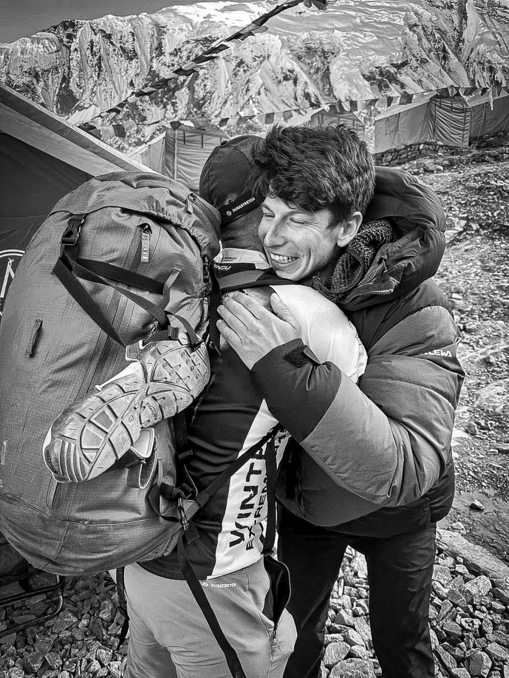 Sjíždím dále, rozhodl jsem se na Martina počkat v C2. Po hodině vypínají vyhřívání – zapadá slunce, a to znamená propad teplot až o čtyřicet stupňů. Je zima, už čekám 2 hodiny. „Martin je KO.“ hlásí mi Ondra. Je to pro mě signál, že budu čekat dlouho. Zalézám do erárního stanu naší společnosti 14summit a děkuji za to! S tmou přichází i Martin. Mám radost, obejmeme se, gratulujeme si, ale víme, že ještě není vyhráno.