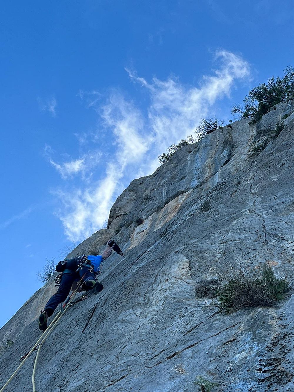 BELLA VISTA 6c+/190m. Nová cesta v novém sektoru, kde jsou cesty od 6a-7b+, většinou velmi vytrvalostní. Každá délka je jiná, od krápníků, po koutky, převislé s koncem v nej skále s technickým lezením v kolmé stěně.