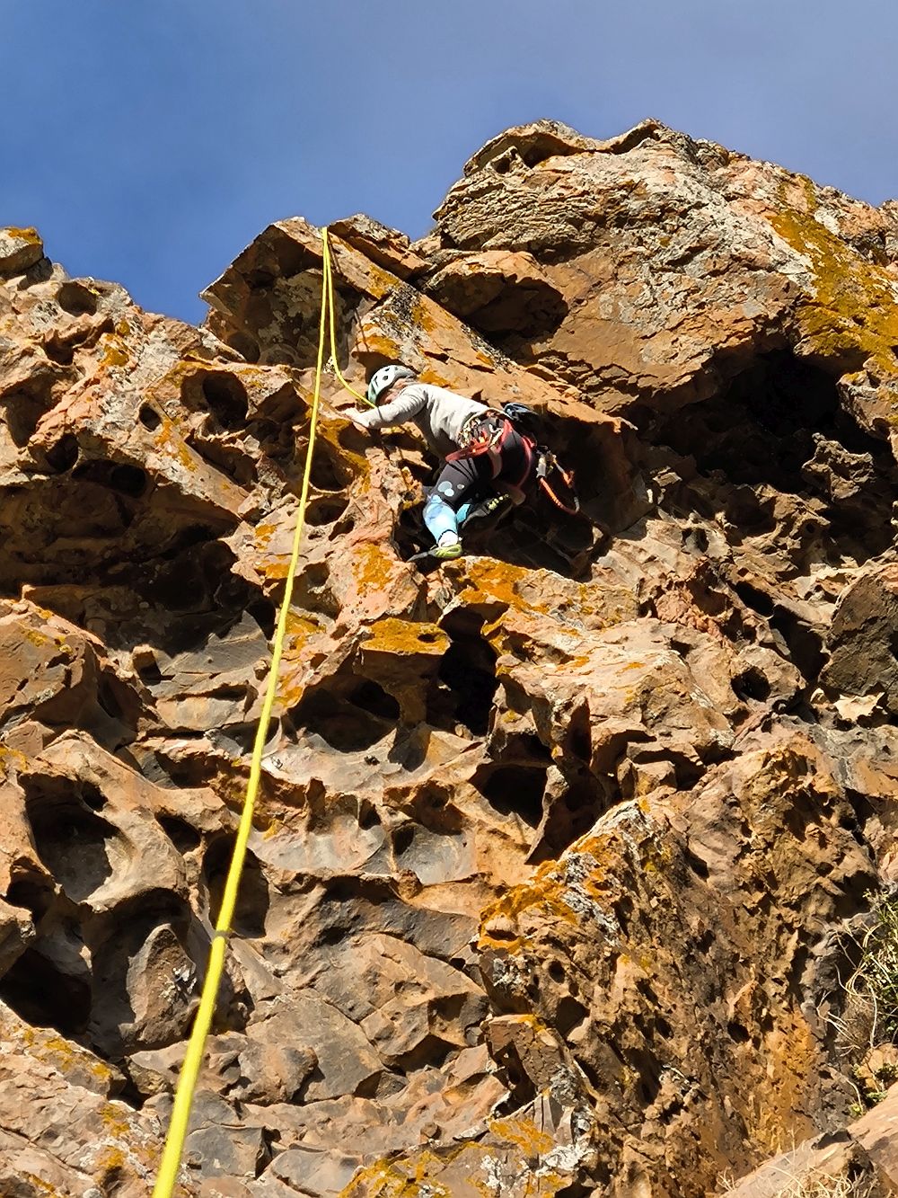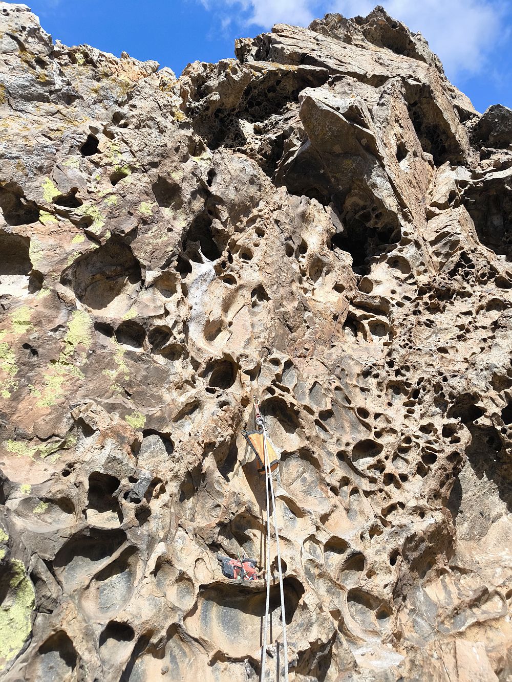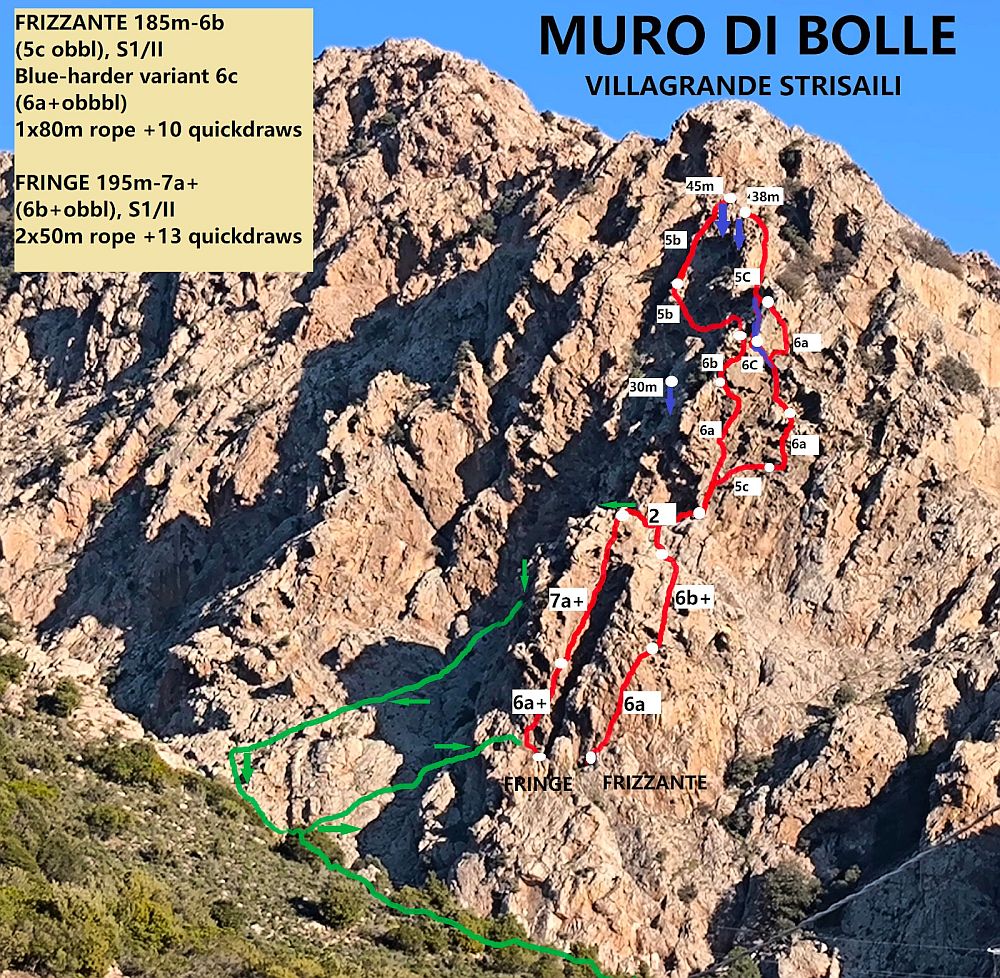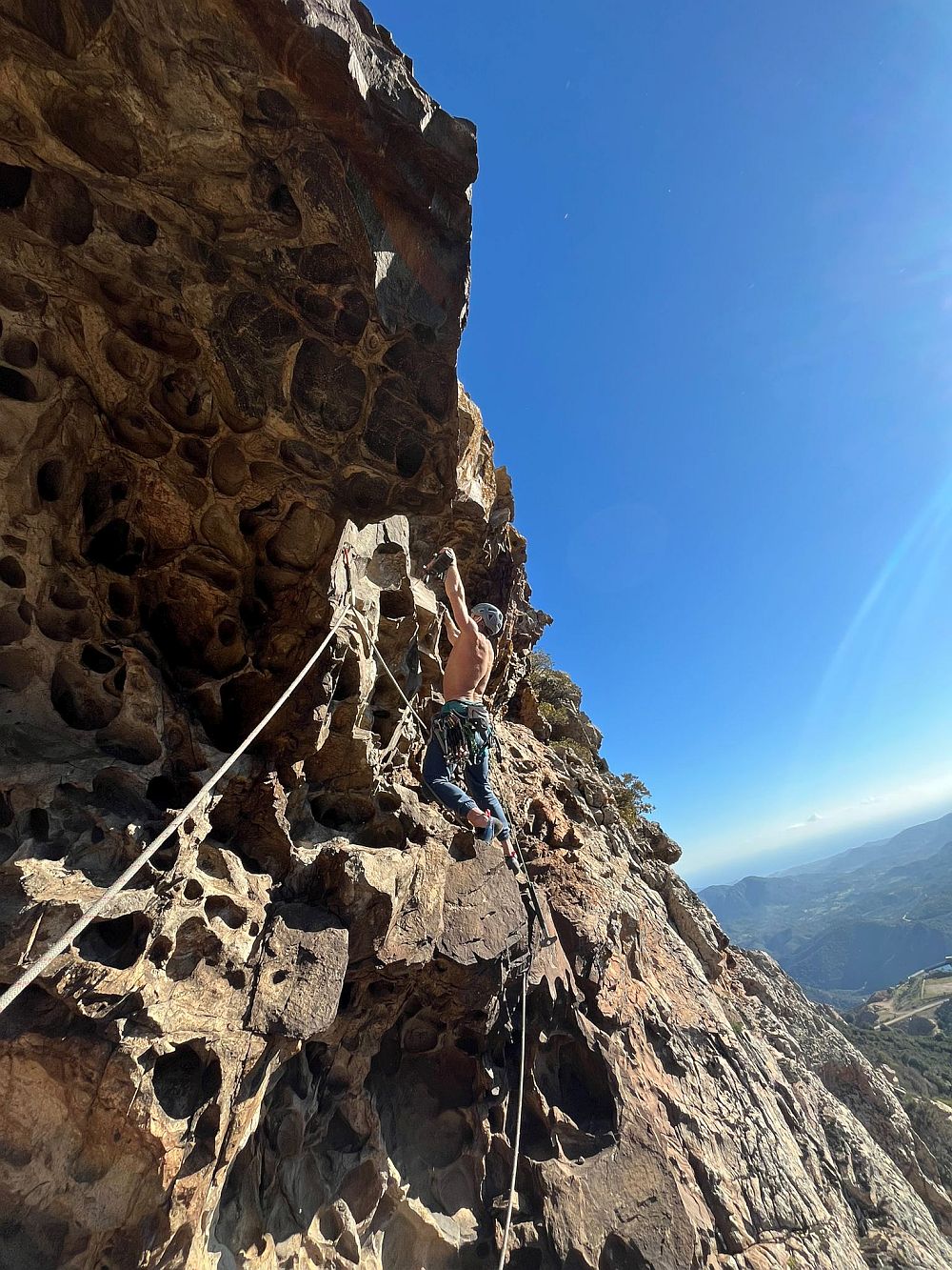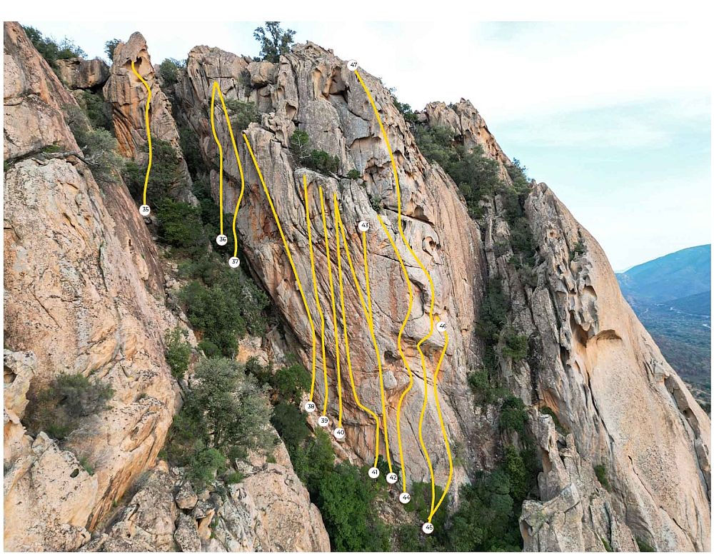 Poslední zcela nový sektor až se 7 délkovými cestami jsme otevřeli nad vesnicí VILLAGRANDE STRISAILLI. Žula, která je tak děrovaná, že jsme tu oblast i tak nazvali MURO DI BOLLE. Jsou tam i jednodélkové cesty. Po ničem podobném jsem nikdy na Sardínii nelezl. A konečně se i povedlo najít místo, kde se dají vrat lehké vicedelky 😄 Přístup do 20 minut od auta a vždy velmi pohodlné slanění převisama a max 2x slanění. Slunce v létě tam bude tak od 11..