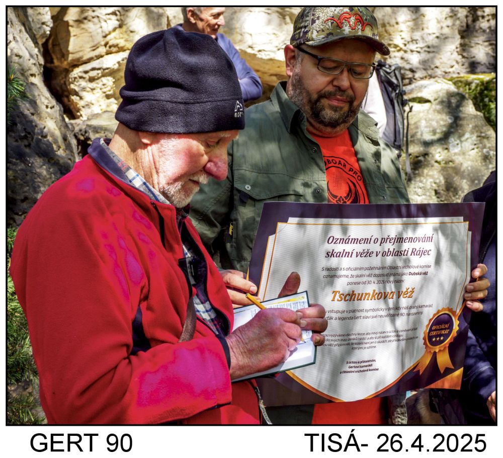 Oslavu k životnímu jubileu 90. narozenin uspořádali minulý týden nestorovi severočeských horolezců Gertu Tschunkovi jeho kamarádi a při té příležitosti mu zařídili přejmenování Dubské věže v Rájci na Tschunkovu věž. Gert je jedním z prvovýstupců na její vrchol v roce 1995. Podívejte se níže na fotoreportáž z akce.