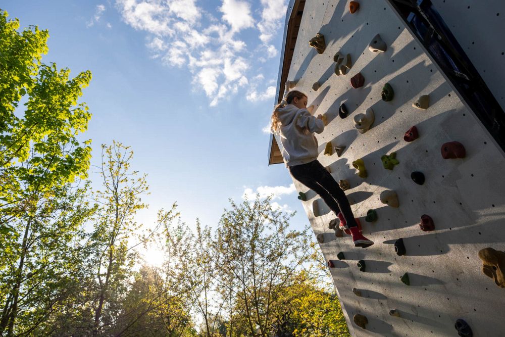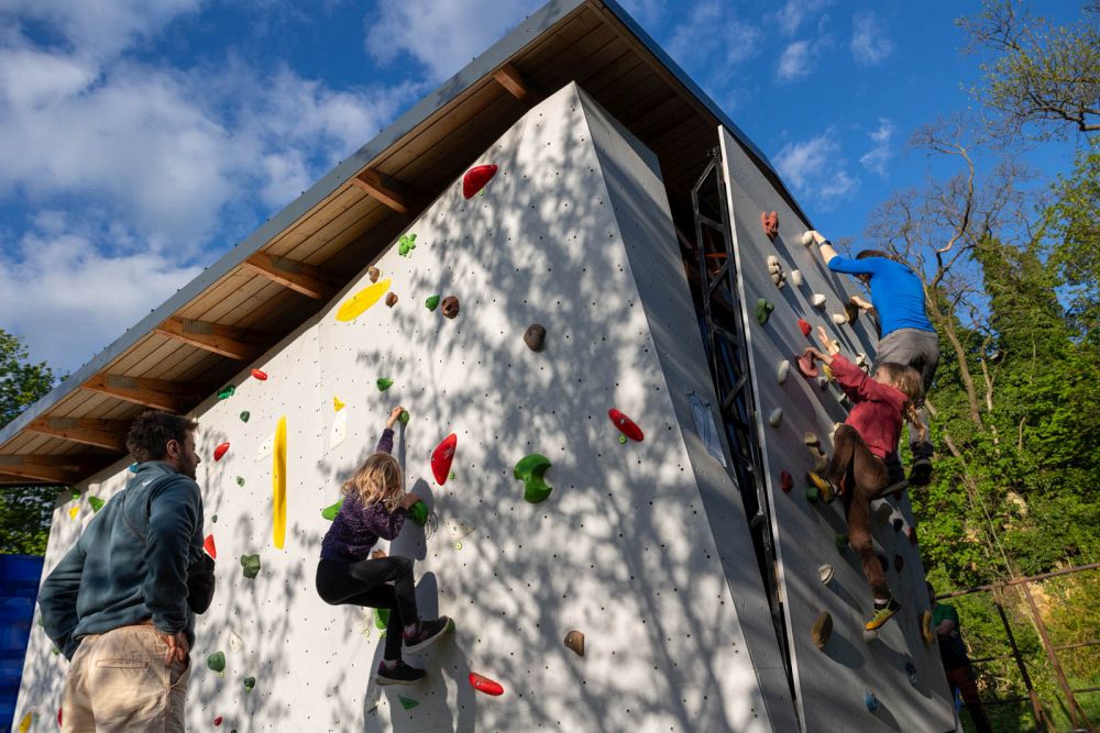 Na děti i dospělé čekalo 8 herních a dovednostních stanovišť, kde bylo potřeba přemýšlet, spolupracovat, překonávat vlastní strach i držet rovnováhu. Největší hvězdou programu byla jednoznačně zip-line, která vozila účastníky vzduchem téměř až ke vchodu do kontejneru. Právě tam pak mnozí zažili svůj první kontakt s lezením – a někteří se ani nechtěli pustit.