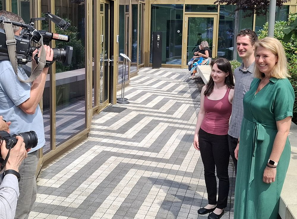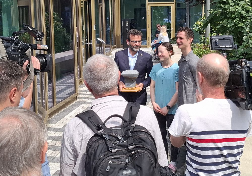 Iva Ondra, Adam Ondra a Jana Pěchová před fotografy a kameramany