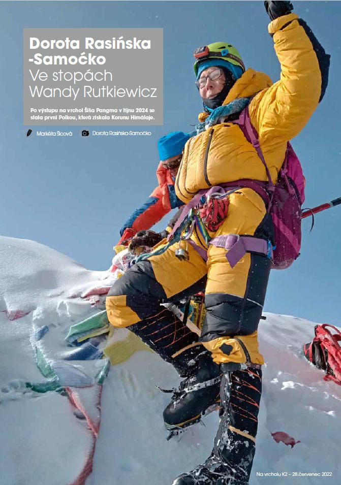 Nejúspěšnější polská vysokohorská lezkyně Dorota Rasińska-Samoćko, šerpy nazývaná také „Speed ​​​​Lady“, se při své první návštěvě v Česku představila na MFA PRAHA 2024 zajímavou přednáškou o expedici na karákóramské vrcholy Gašerbrum I a II. Na obě osmitisícovky vystoupila v červenci 2024 během 6 dnů krátce po výstupu na Makalu. Rozhovor najdete na str. 19-22.
