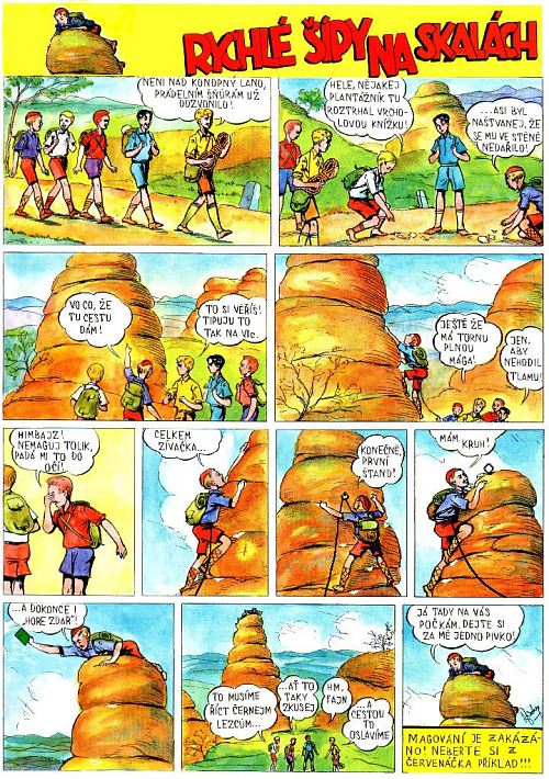 V předchozím článku o historii boulderingu jsme se dověděli, že Rychlé Šípy buldrovali. Nyní se objevil nový a nikdy nezveřejněný comix dokazující, že RŠ i lozili a to dokonce s magnéziem!!!