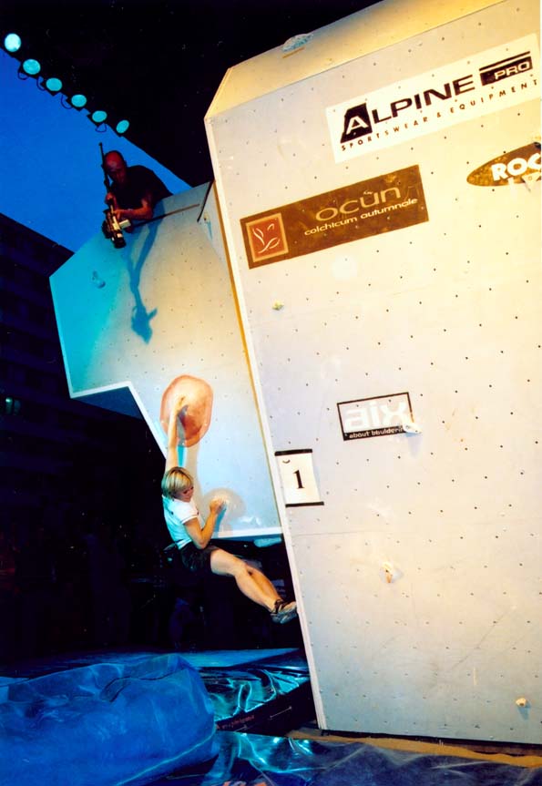 Finále holek začalo asi v půl osmý večer, kdy se poprvé rozsvítili světla ve střeše a pomalu se rozpoutával a rozdmýchával kotel, který byl na Brumlovce při Contestu.Diváků bylo něco kolem čtyř stovek (možná o kilo víc) a všichni parádně povzbuzovali závodníky, kteří se prali s jednotlivými bouldry, které už byly mnohem těžší než kvalifikační.
