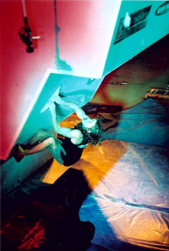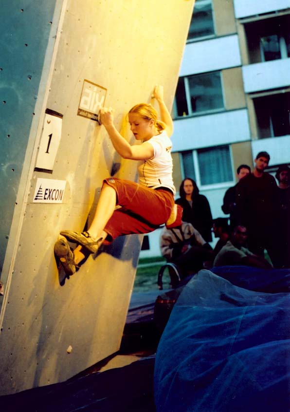 Druhý bouldr byl jedním z nejhezčích bouldrů vůbec (stavěl Lahvoň), vedl v koutu věže a holky prověřil v ohebnosti jejich boků a celého těla. Top byl sice jen jeden (Věrka až na druhej pokus), ale padalo se dva chyty od topu.