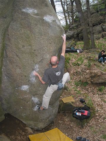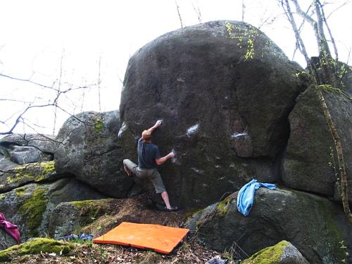 Tyto původní směry byly očíslovány a čísla se v naprosté většině zachovala dodnes. Jsou uvedena i v popisech boulderů. Některé starší věci stihly zarůst vegetací. Podzimní věž najděte prosím dle mapek a popisů, které jsem zveřejnil dříve. Aktuální nabídka čítá sto věciček od jedničky až po 7C+. Kromě boulderování je Podzimní věž i lákadlem pro „lanolezce“, neboť se tu nachází nejdelší cesty Petrohradu (až 20 metrů). Už věříte, že je Petrohrad famózní? (Mimochodem jsme konečně zavítali do fenomenálního Fontainebleau, z něhož jistě někdy vznikne reportáž a neřekl bych, že vyjma rozsahu Petráč nějak výrazně zaostává a i ten rozsah celého Jesenicka, kde už je víc než tisícovka věcí, stává se alespoň zlomkem bleau)
