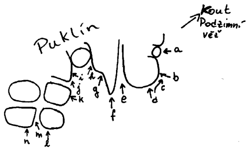 Podzimní věž – pravá část (bouldery se nacházejí uvnitř výrazného komína)