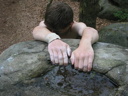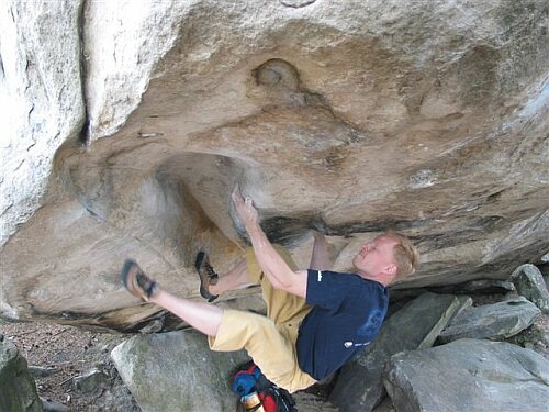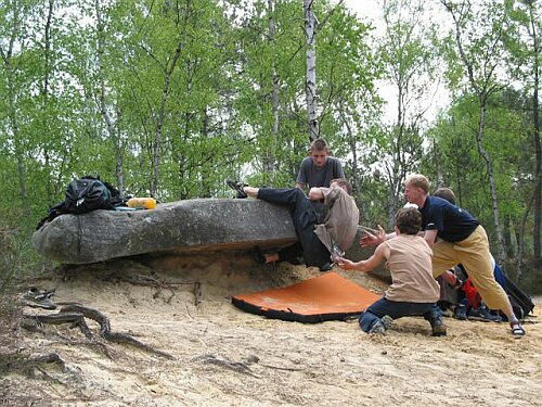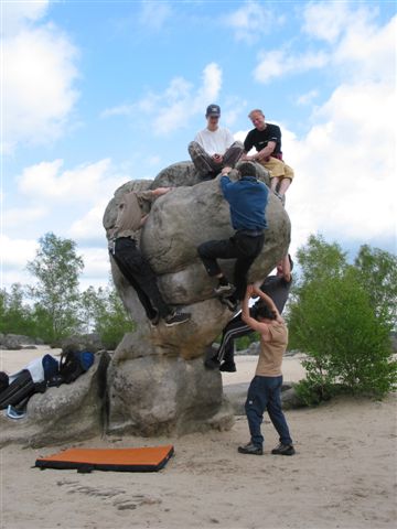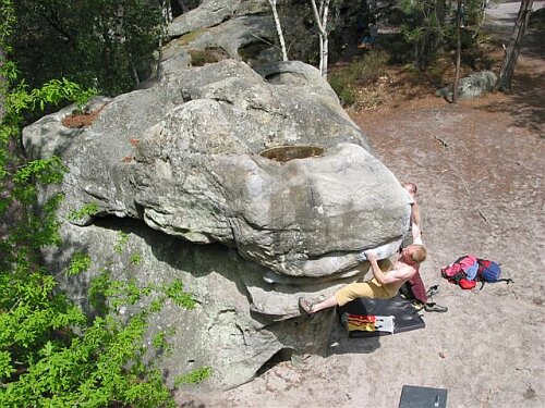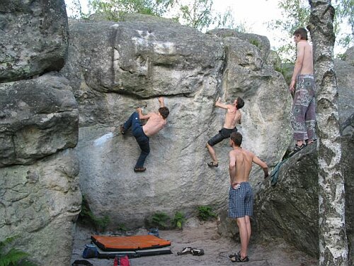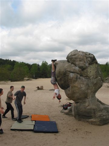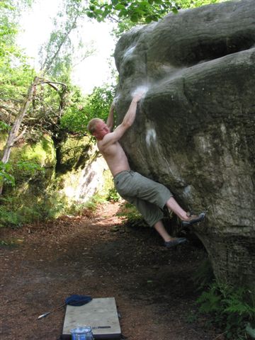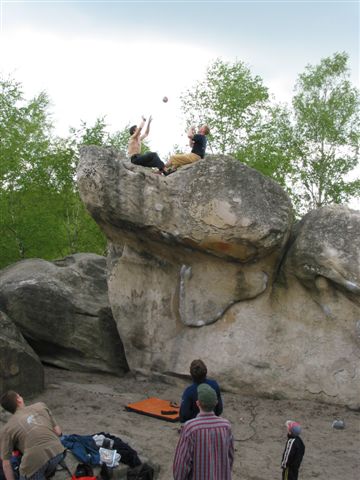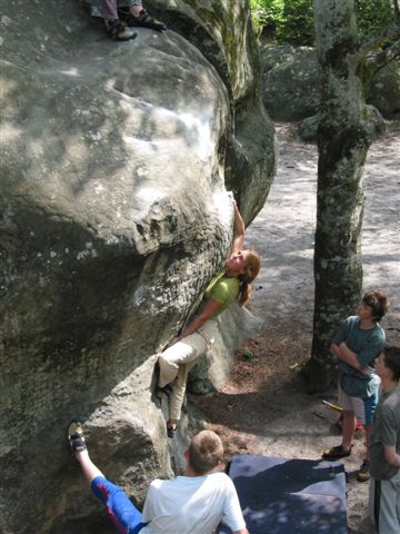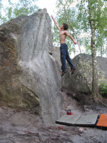V Apremontu se vůbec děly věci. Po několika neúspěšných pokusech o normální přelez jednoho 7A, se jali hoši upravovat rozběhovou dráhu. Následující půlhodinu se lesem ozýval mohutný dusot a k vidění byly nádherné letecké kreace. Nakonec se opravdu Michalovi toto 4,5 metru vysoké 7A podařilo vyběhnout a skočit.