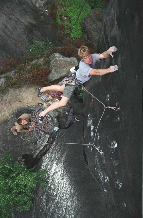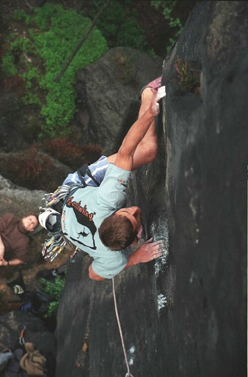 Takže začnem:  Dobij se, sedni na svoji černou naleštěnou Ducatti, posaď za sebe krásku Triniti a vydej se směrem na Labskou Stráň a zaparkuj svoji mašinu u vyhlídky Belveder. Oblíkni Triniti do sedáku, vraž jí do ruky Grigri, hoď přes rameno lano a vyraž po lesní pěšině na Strážce. Až tam dorazíš, tak se navaž, polib naposled Triniti, vem si čtyři expresky, protáhni prsty a pořádně si namáguj, budeš to potřebovat. Čeká tě několika krokový boulder za malé bočáčky ve kterém budeš potřebovat schopnosti jako Neo. Dál už to je jenom tvůj příběh.