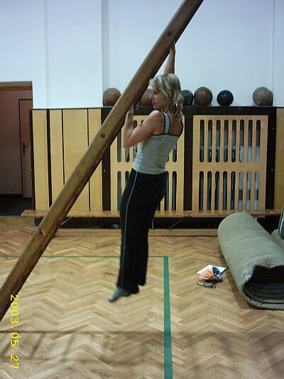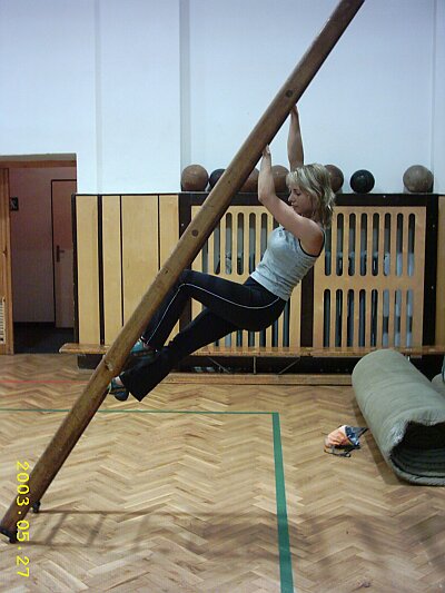 Přehmatávání, provazový žebřík lze nahradit pevným žebříkem v tělocvičně