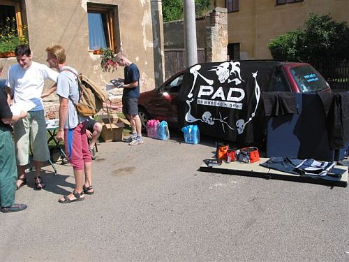 Sraz byl tedy v sobotu v deset na návsi Petrohradu. Petr Štěch vyvěsil svoji firemní vlajku, a zanedlouho přišel místní pan starosta řka, že tu žádnou anarchistickou technopárty nechce. Kluci mu slušně vysvětlili oč tu běží a pak si se starostou dlouho vyprávěli a ten jim dokonce věnoval podrobnou mapku Petrohradu.