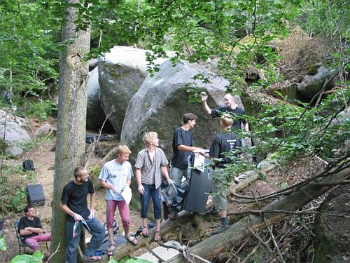 Kluci sem již dlouhou dobu chodili tyto kameny oprašovat a kartáčkovat, budovali pod nimi doskočiště a mezi nimi lesní pěšinky, ale hlavně se jim zde podařilo udělat - vylézt ke stovce závodních boulderů od těch nejlehčích až po 8A/A+.