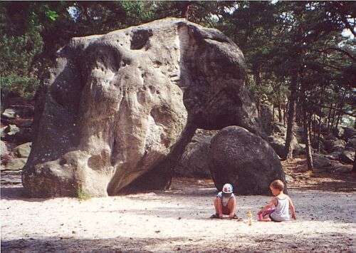 Celé Fontainebleau se skládá z 39 oblastí, které jsou roztroušeny po okolí vokruhu 50 km. Při našem pobytu jsme jich navštívili osm: Bas Cuvier, Cuvier Rempart, La Merveille, Franchard Isatis, La Roche aux Sabots, Le Cul de Chien a Buthiers. Nevím jak vypadá zbylých 31, ale tyhle jsou perfektní. Každá něčím zvláštní a jedinečná. Do všech byl přístup od parkoviště do 15 minut a všechny jako stvořené pro rodiny smalými dětmi. Když se odvaří taťka, vystřídá maminu u bábovek, nebo vezme špunta na dobrodružnou výpravu do spleti chodeb pískovcového bludiště, zkrátka pohoda. Oblast je hojně navštěvovaná místními lezci nejrůznějších věkových a výkonnostních kategorií, ale i nelezců jako místo pikniků a rekreačních vycházek.