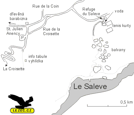 Jak již bylo řečeno přístup je nejlepší z parkoviště u Refuge du Saleve vedle tenisových kurtů. Pod těmi nejúžasnějšími sektory jste za slabou čtvrthodinku.